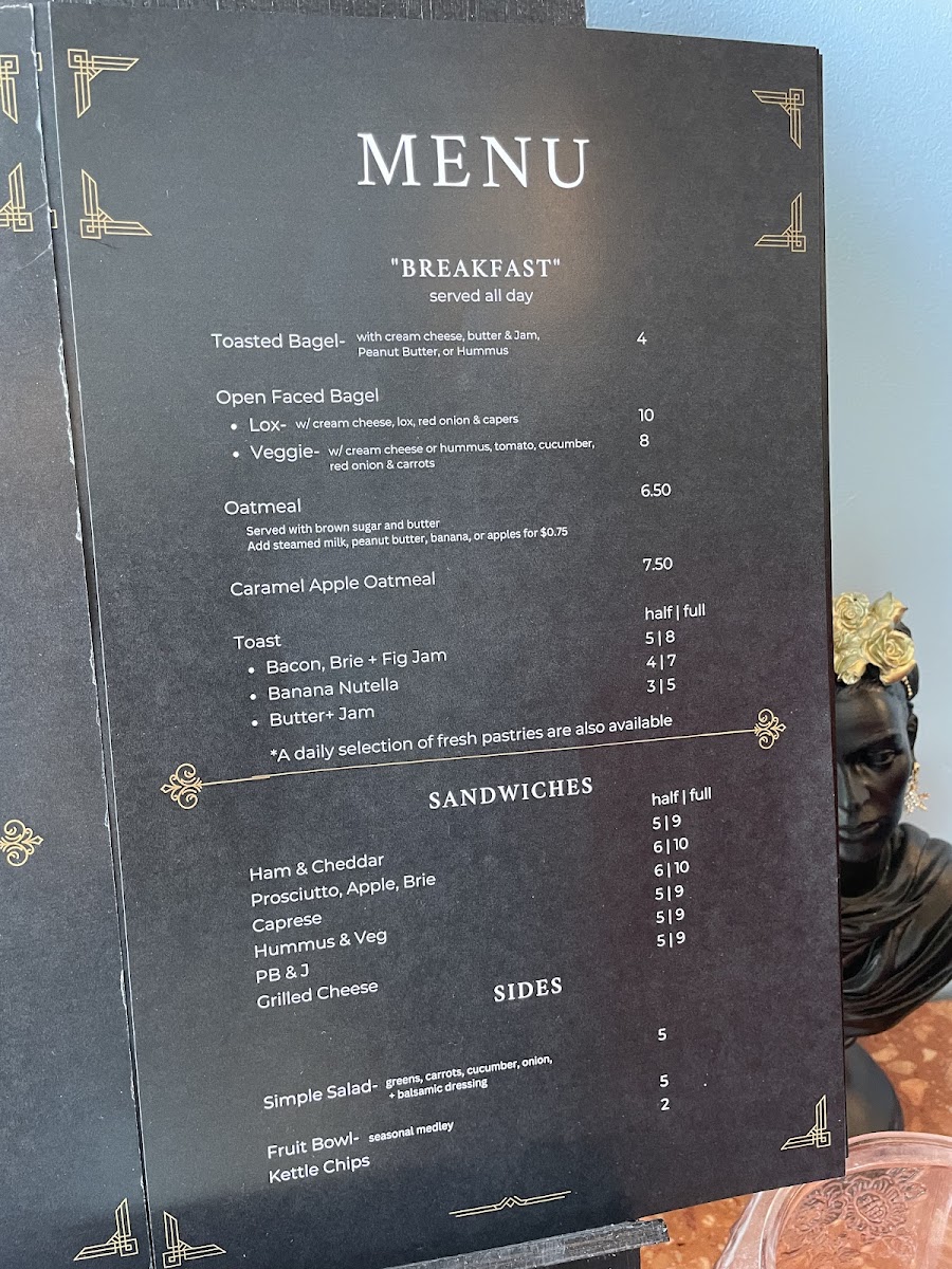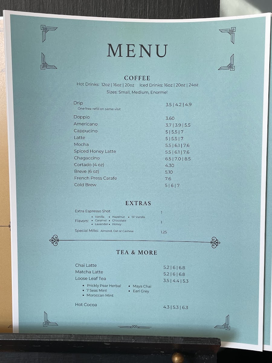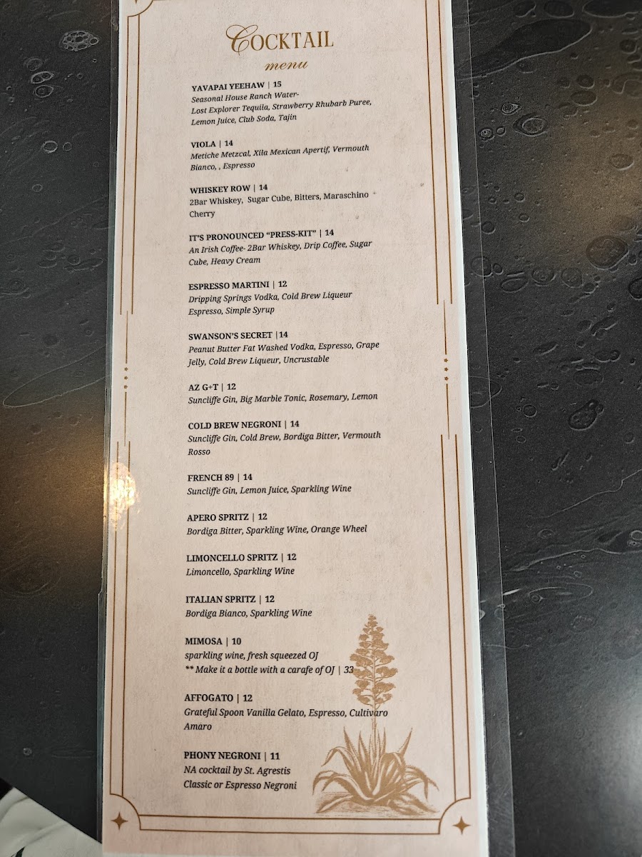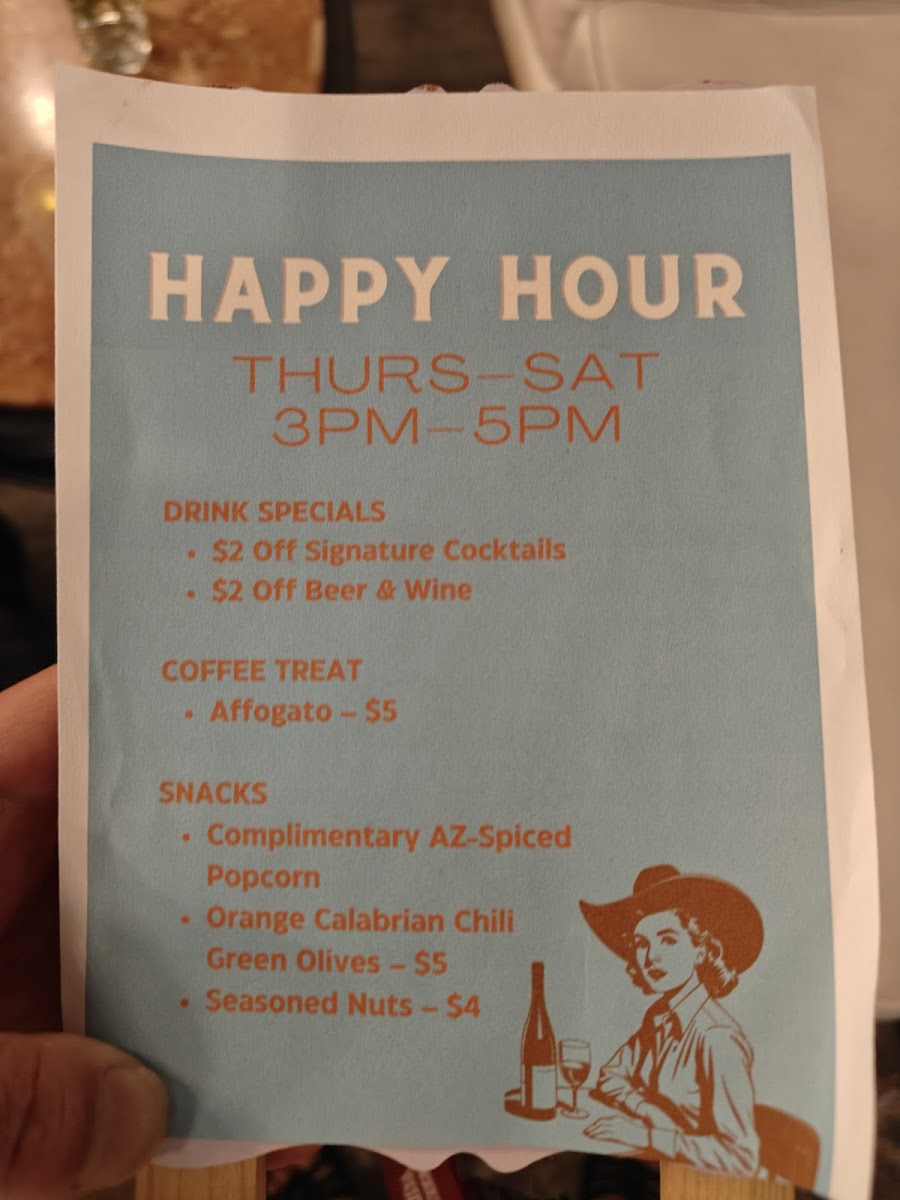 The menu at The Century Lounge offers a delightful range of options, combining classic favorites with unique twists. For coffee lovers, the "Coffee - Classics" section features beverages like Cappuccino, Americano, and Caramel Latte, each a warm, comforting choice. The Coffee - Signatures section introduces more creative options, including the Amigos Horchata Latte, Chagaccino, and Sonoran Espresso Tonic (16oz). For a refreshing change, there’s also the seasonal Pandan Matcha and Pumpkin Spice Latte. If you're in the mood for something light, the Small Bites menu includes Mashed Potato Tots, Charcuterie, and a delicious Berry Brie Croissant. Breakfast fans will love options like Super Avocado Toast, Toasted Bagel, and the Sunrise Breakfast Sandwich. For those craving something savory, the Handheld section presents tempting choices such as the Grilled Goat, Turkey Club, and BLTA. The Soup & Greens offerings include a refreshing House Salad, perfect for pairing with any of the other dishes. And for those who want something to sip along with their meal, there are also bottled drinks like Mountain Valley Spring Water and Diet Coke Can 12oz. Whether you're stopping by for a quick bite or a relaxing coffee experience, The Century Lounge offers a menu that caters to a variety of tastes and cravings.